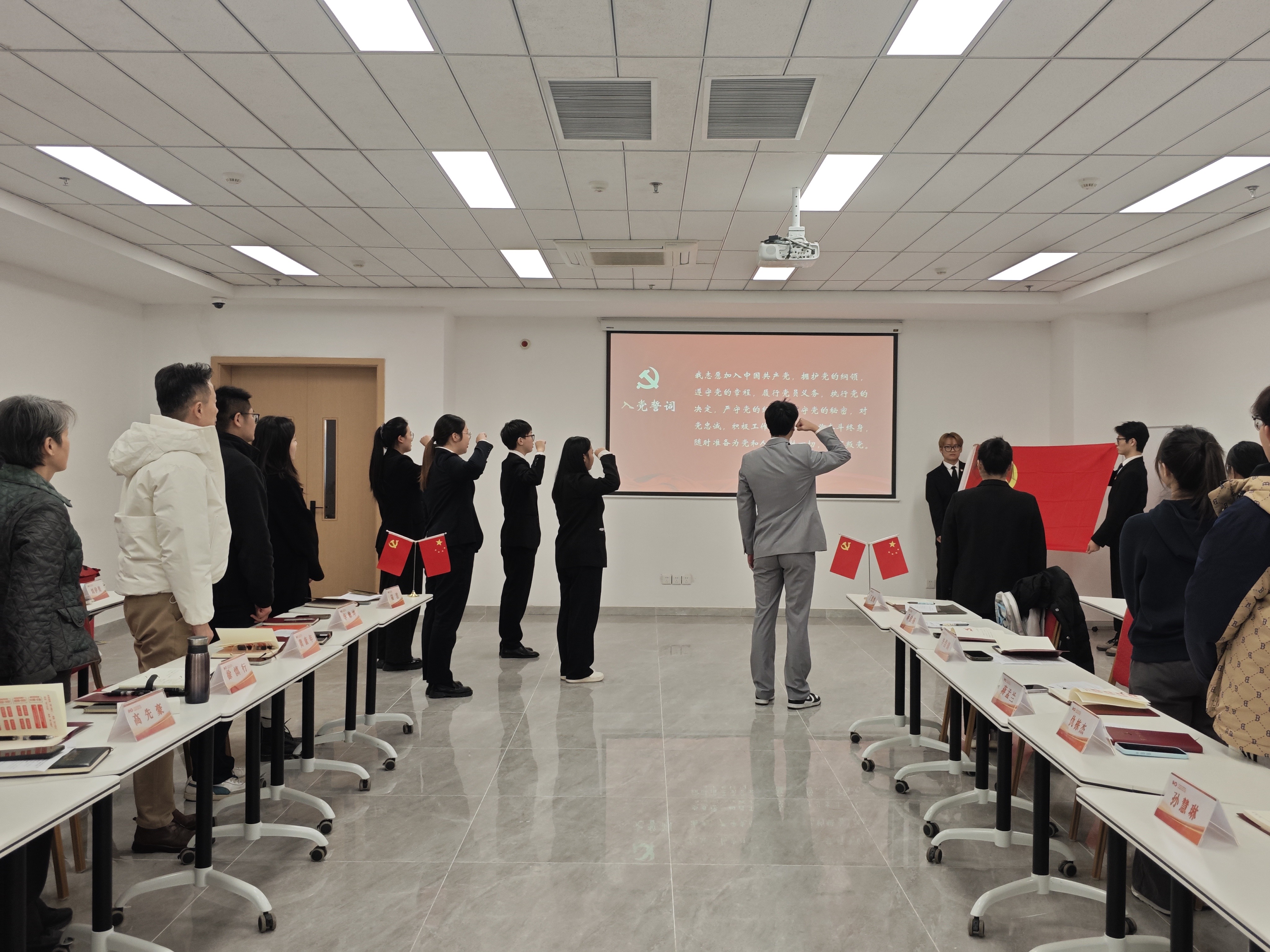 党旗鲜红,誓言铿锵。2025年11月26日下午,国际酒店与饮食文化学院直属党支部于躬行楼106举行新发展党员入党宣誓仪式,支部全体师生党员参加,仪式庄重简朴,氛围热烈严肃,充分体现了党组织生活的政治性和仪式感。活动由党支部组织委员、青年委员韩冬冬主持。